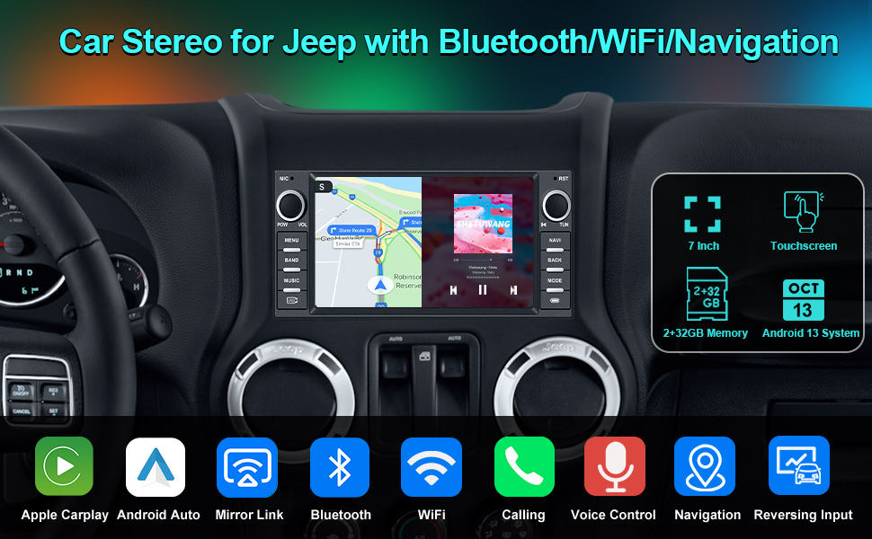 Car Radio for Jeep: This car stereo is specially designed for Jeep Wrangler/Unlimited 2007-2018; Jeep Compass 2009-2016; Jeep Patriot 2009-2016; Jeep Grand Cherokee 2005-2011; Jeep Liberty 2008-2011; Jeep Commander 2008-2011; Chrysler Sebring 2007-2010; Town&Country 2007-2010; Dodge Grand Caravan 2011-2014; Dodge Charger 2008-2010; Dodge Ram Pickup 1500/2500/3500 2009-2012. It comes with Canbus and multiple harnesses. No program required and very convenient for cars with original car settings.