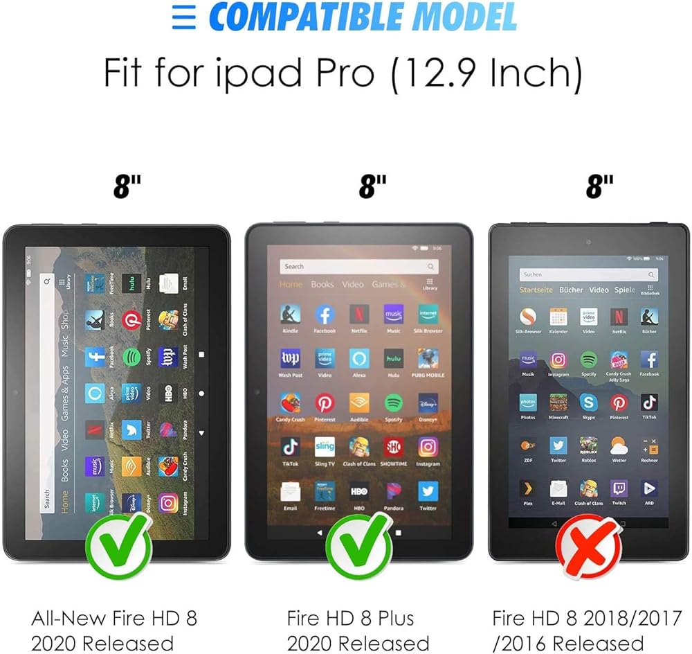 • Compatible with All-New Fire HD 8 / Fire HD 8 Plus 2020 (10th Gen,8-Inch,2020 Release), NOT fit for Fire HD 8 2018 / 2017 / 2016 Released,NOT for any other models.