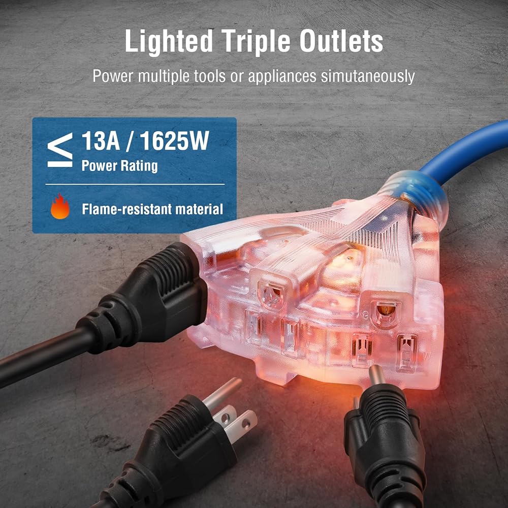 【 Yellow Jacket 12 Gauge SJTOW Cord 】The strong 12awg SJTOW retractable extension cord itself is flame retardant, tangle-free, and resistant to abrasion, water, oil, UV light, ozone, alkaline, and acid that you may find in a typical garage; keeps flexibility and durability in all temperature; the stark yellow PVC cover makes the cable very visible to prevent any accidental falls; for indoor or dry-location use only