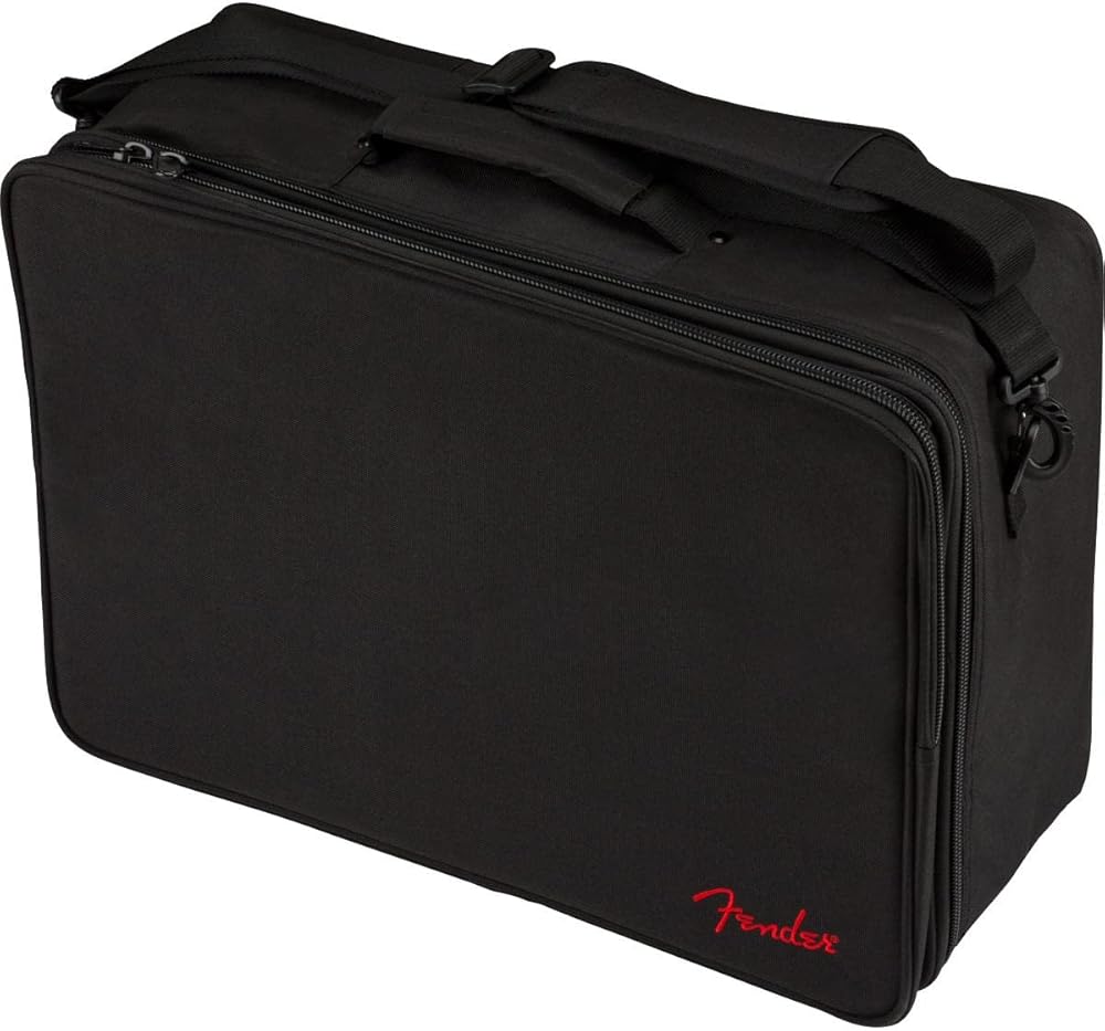 Surprisingly simple and remarkably versatile – the Fender® Professional Pedal Board delivers world-class performance and utility. The low-profile precision-machined anodized-aluminum chassis is lightweight and strong enough to stand up to the rigors of the road, while the thoughtfully designed cable routing and management system allows you to keep things neat and tidy, even if your board is overflowing with pedals. Under the hood, a universal mounting bracket fits most popular pedal power-supplies – and is a perfect match for the Fender Engine Room series. The included soft case with storage pocket and cable ties will keep your pedals and accessories safe on the way to the gig, studio or any other destination.