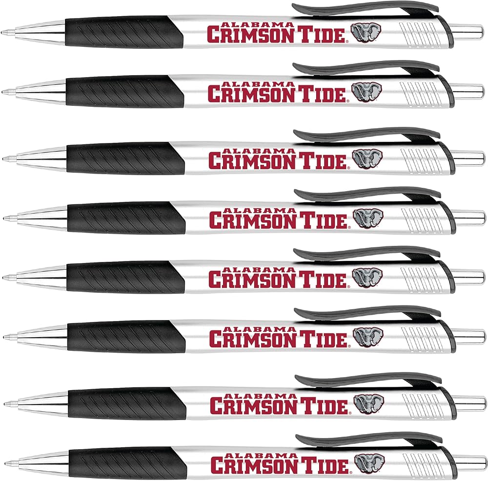 Alabama Comfort Feel Metal Pens - 6 Pack: Each pen is a pen with a soft barrel that provides comfortable writing, featuring school artwork. They also have a stylus on the end so that they can be used on touch screen devices. NCAA licensed. Pens are 1mm ballpoint, retractable pen with black ink.