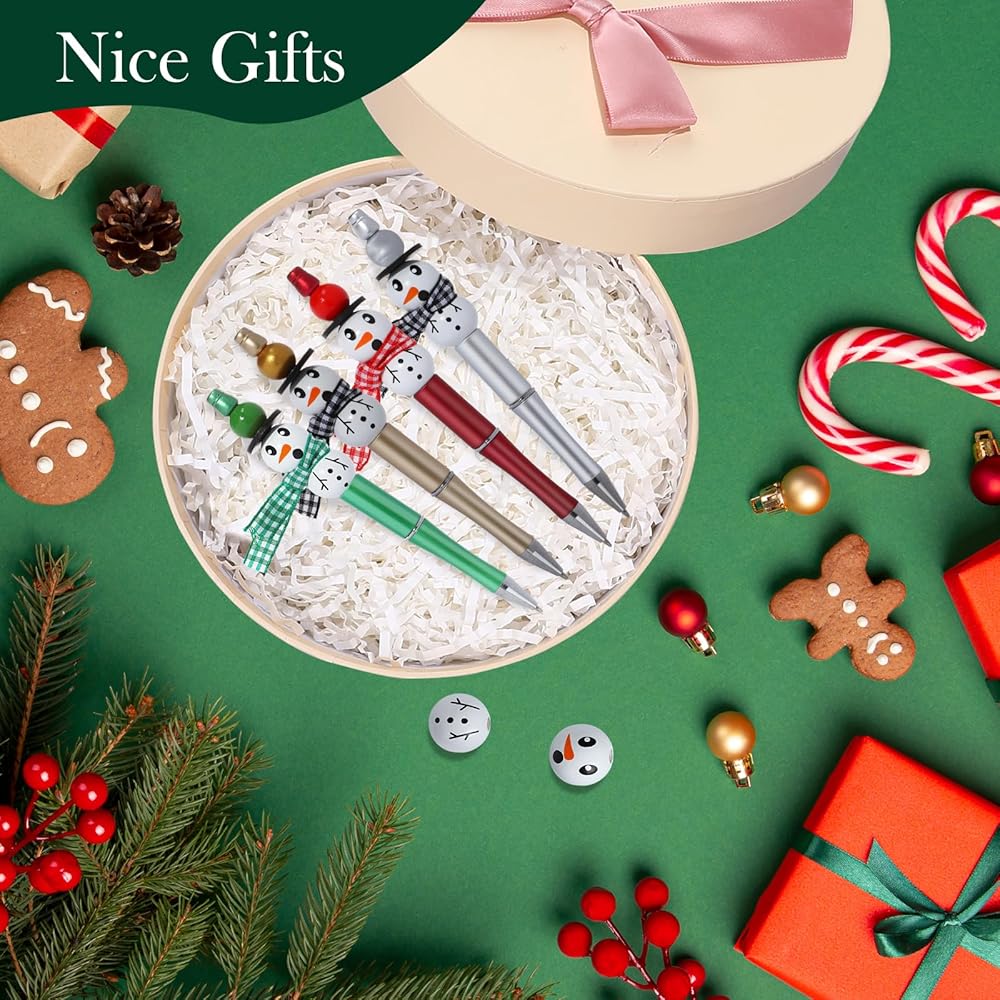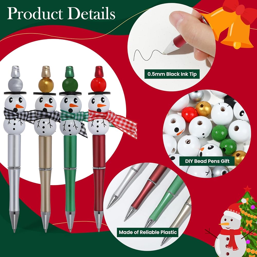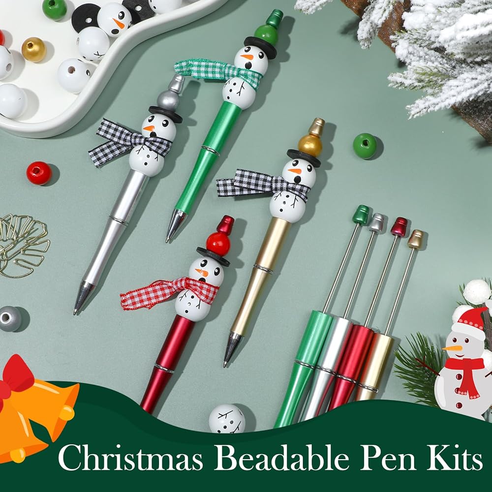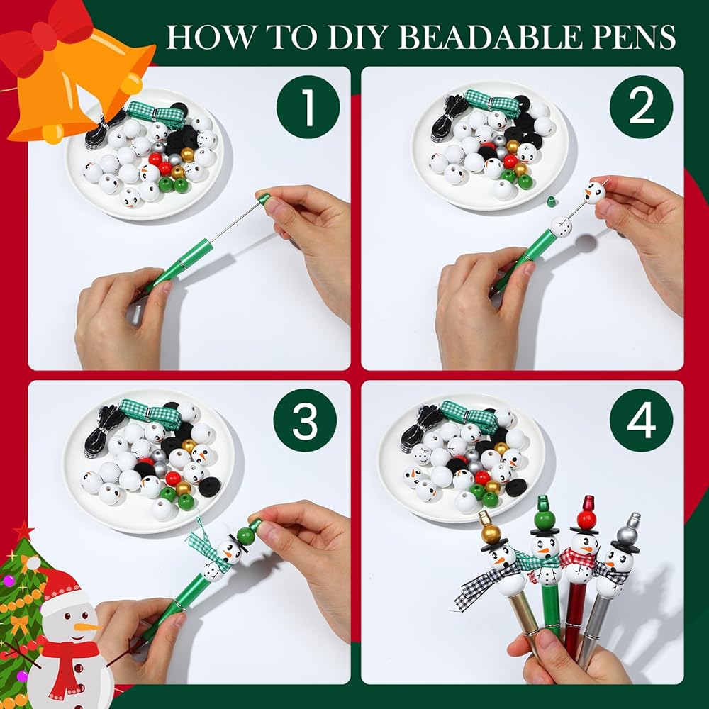 【Funny DIY Bead Pens】You can use these Christmas themed wooden snowman beads and ribbons to decorate the beadable pens, which help to create a Christmas atmosphere, so you can create Christmas ballpoint pens by yourself and enjoy the fun of DIY.