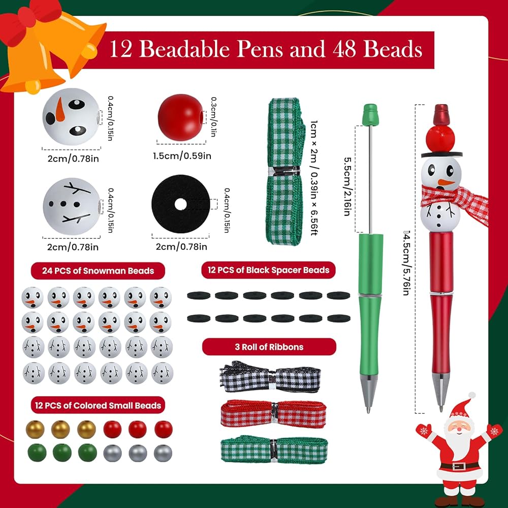 【Wide Application】These cute Christmas beadable pens kit can meet your daily writing needs in office, school or home, also can be great party favors and bag fillers for Christmas parties and special gifts to your friends and families.