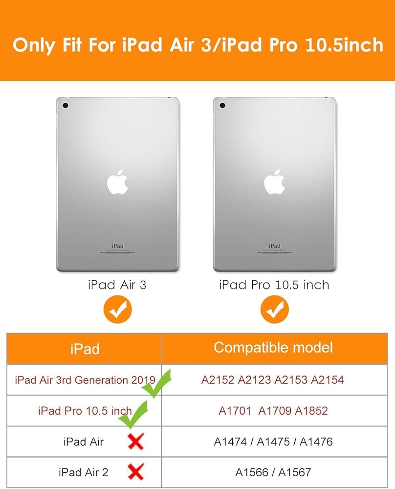Compatible with Apple iPad Air 3rd generation 10.5 Inch 2019 Released(model:A2152/A2153/A2123) /iPad pro 10.5 Inch 2017(model A1701 1709). It will NOT work any other model device.Please confirm the product before purchase!!!