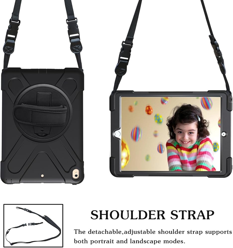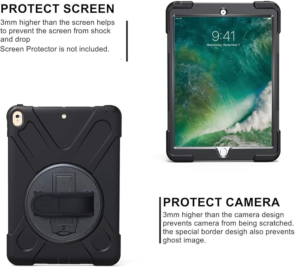 TSQ Case for iPad Air 3 /3rd Generation 10.5" 2019/ Pro 10.5 Inch 2017 | Military Grade Heavy Duty Rugged Protective Kids Case with Rotating Stand, Hand/Shoulder Strap | Black