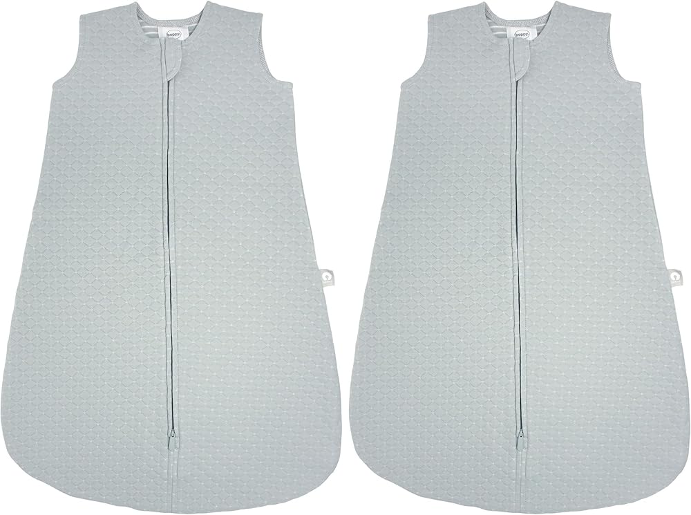 This sleep sack wearable blanket is designed to keep baby at a comfortable temperature to sleep through the night. Thoughtfully designed with safe sleep in mind, the Boppy sleep sack wearable baby blanket has all the features needed so you and baby can rest easy with a construction that allows for hip movement. Provides comfort for baby and peace of mind for you. Features a two-way zipper for easy nighttime diaper changes and a zipper guard to protect baby's neck from any potential scratches. The sleeveless design made with a soft quilt-textured knit helps avoid overheating and is daycare approved for nap time. For proper fit, ensure baby meets all sizing guidelines. AAP Safe Sleep Recommendations: AAP recommends all babies sleep on their back, on a flat, firm, separate sleep surface such as a bassinet, keeping the baby's sleep space free from blankets, bumpers, nursing supports, toys or other objects. In place of blankets, wearable blankets are recommended to keep baby at a comfortable temperature. What Is a TOG Rating? TOG, or Thermal Overall Grade, measures the thermal insulation of a product and is used to help you determine how to keep baby at a comfortable temperature. For baby sleepwear, TOG ratings correspond to the temperature of the sleep space. TOG rating 1.0 is for room temperatures between 64-74°F.