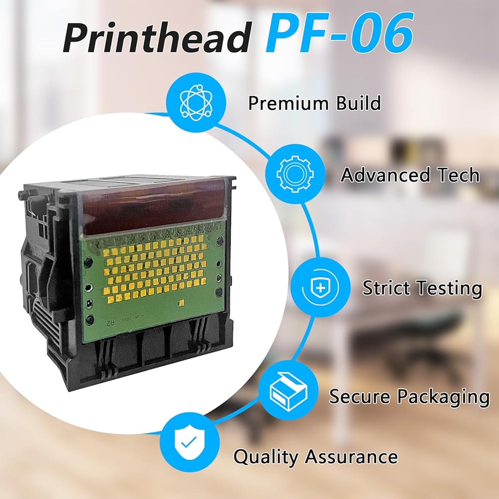 【Easy Installation】Replacing your old print head with the new PF-06 is a breeze. Simply remove the old print head and install the new one. If your printer displays messages like "unrecognized" after PF-06 installation, use the decode clear function on the printer and reinstall it. Remember, avoid touching the chip during installation to ensure proper functioning.