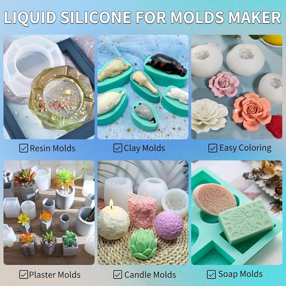 PREMIUM MOLDS MAKING SILICONE MATERIAL: Our translucent liquid silicone for mold making are platinum-cured silicone, made by safe silicone material, non-toxic and no odor, very flexible, soft and clear. You could also mix mold making silicone rubber with mica powder to create new colors.