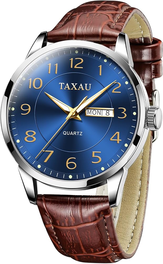 【⌚Classic and Fashion Design⌚】Men leather watches with arabic numbers are simple,clear,and easily recognizable and easy to read.The brown leather bond watches for men paired with blue dial gives a sense of stability and grandeur.This casual watch can show mature and composed temperament,to enhance your overall image.