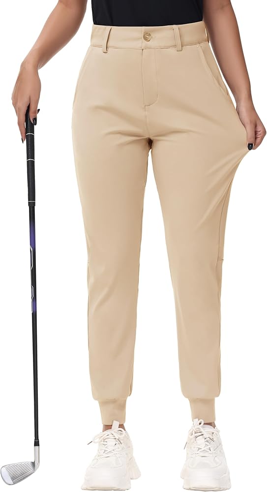 [Standard 4 Pocket Designs]: Women's Golf Joggers also take other elements from traditional golf pants including side deep slant pockets, 2 back pockets (1 with zipper) enough to store your essentials, easy to access.