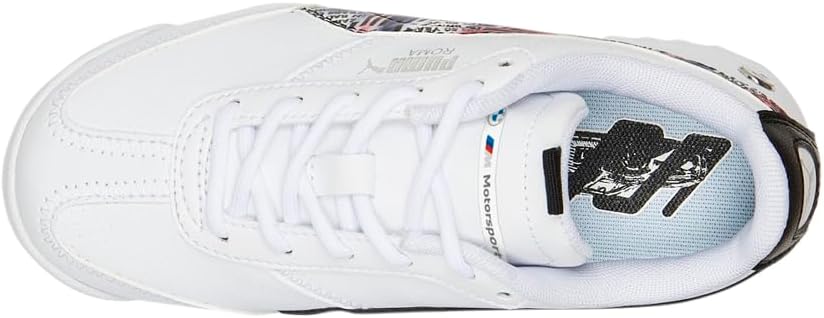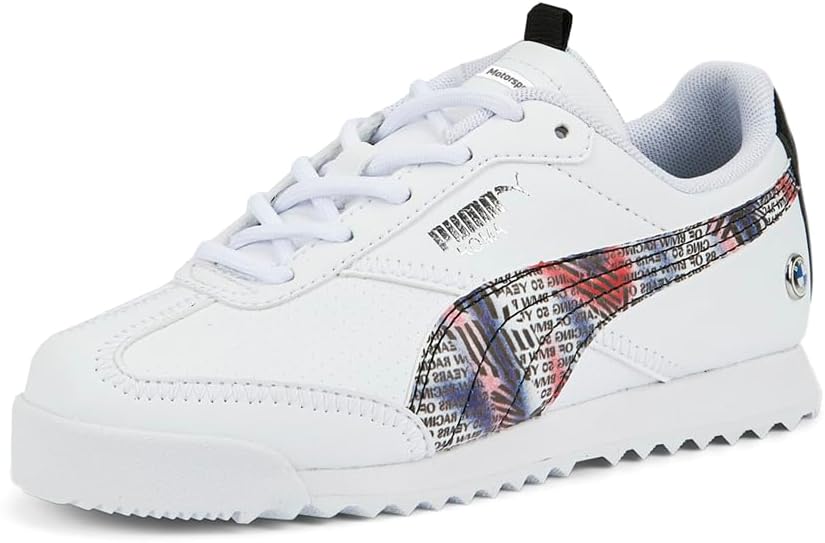 BMW M Motorsport Roma has a silhouette that comes from sportstyle for a more lifestyle consumer. This casual style has a mesh tongue that gives breathability, a leather upper with Puma Roma branding below the eyelets, a dotted formstripe in both medial and lateral sides. You can also find the iconic BMW M Motorsport pin on the lateral side with a black outsole that gives this style a unique and trendy look.