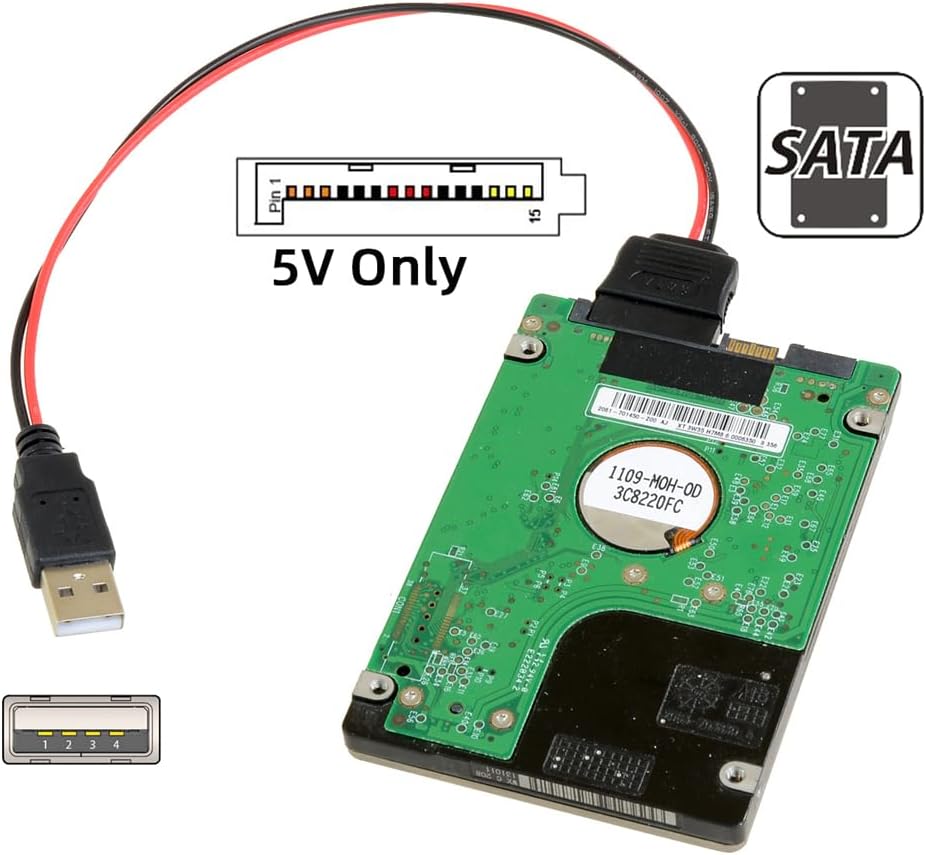 Xiwai Single USB 2.0 to SATA Converter Adapter Cord 15Pin DC 5V Power Supply Hard Drive Cable for 2.5 inch SATA HDD SSD Disk Driver, 1ft