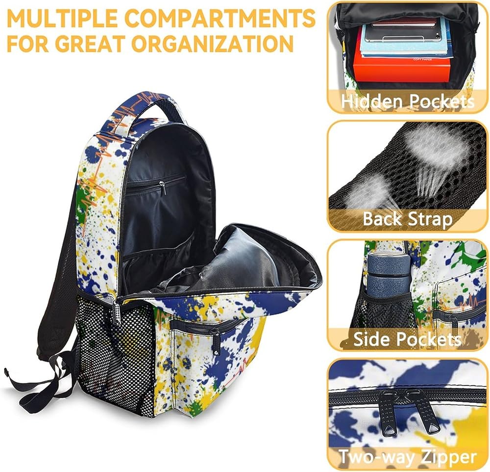(4) Large capacity and storage space, multilayer design, easy to sort out.The backpack has main pocket, 4 compartments inside, second pocket, 2 side water bottle pockets, enough space to carry items for daily use.