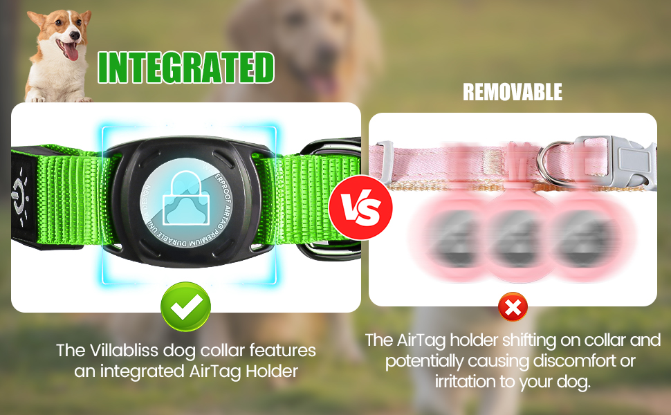 [Designed For Airtag] Villabliss AirTag collar can keep AirTag from falling or dangling. Compared with other Air Tag holder, Villabliss integrated AirTag dog collar is more cost-effective. No need to buy additional AirTag holder for dog collar. Our Air Tag collar is exactly what you need for tracking your dog safely and easily!