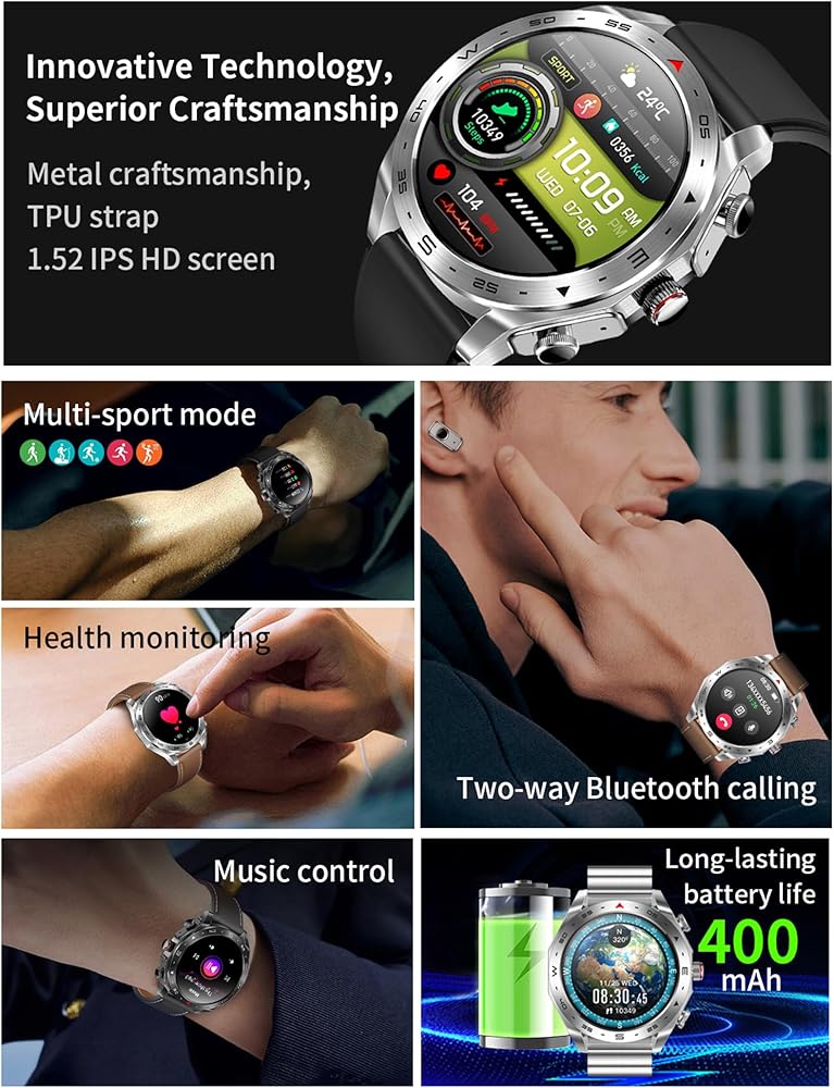 【Powerful battery】 Built-in 400mAh battery, which is twice that of traditional smartwatches. Large capacity and low power design provide longer service life. Under normal use, enough to last up to 1 week. 30 days + standby. Talk on the phone while driving or at work and enjoy music. Compatible with most smartphones .