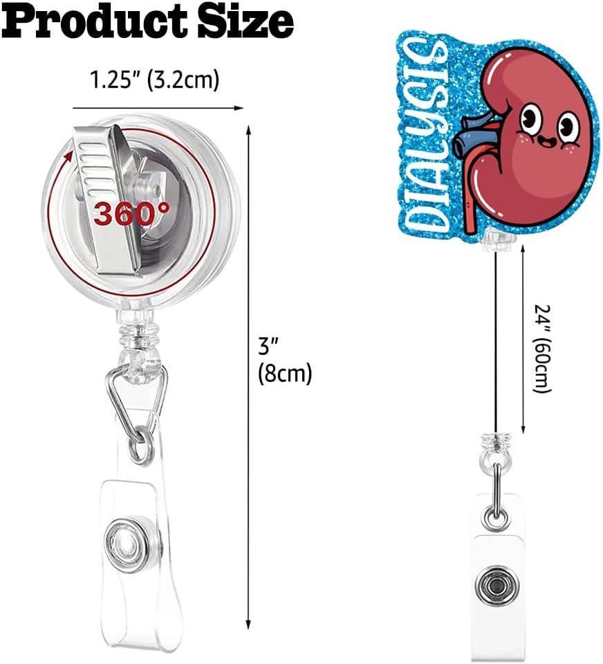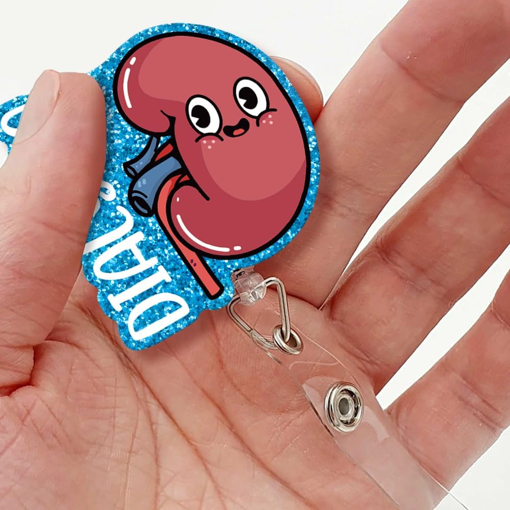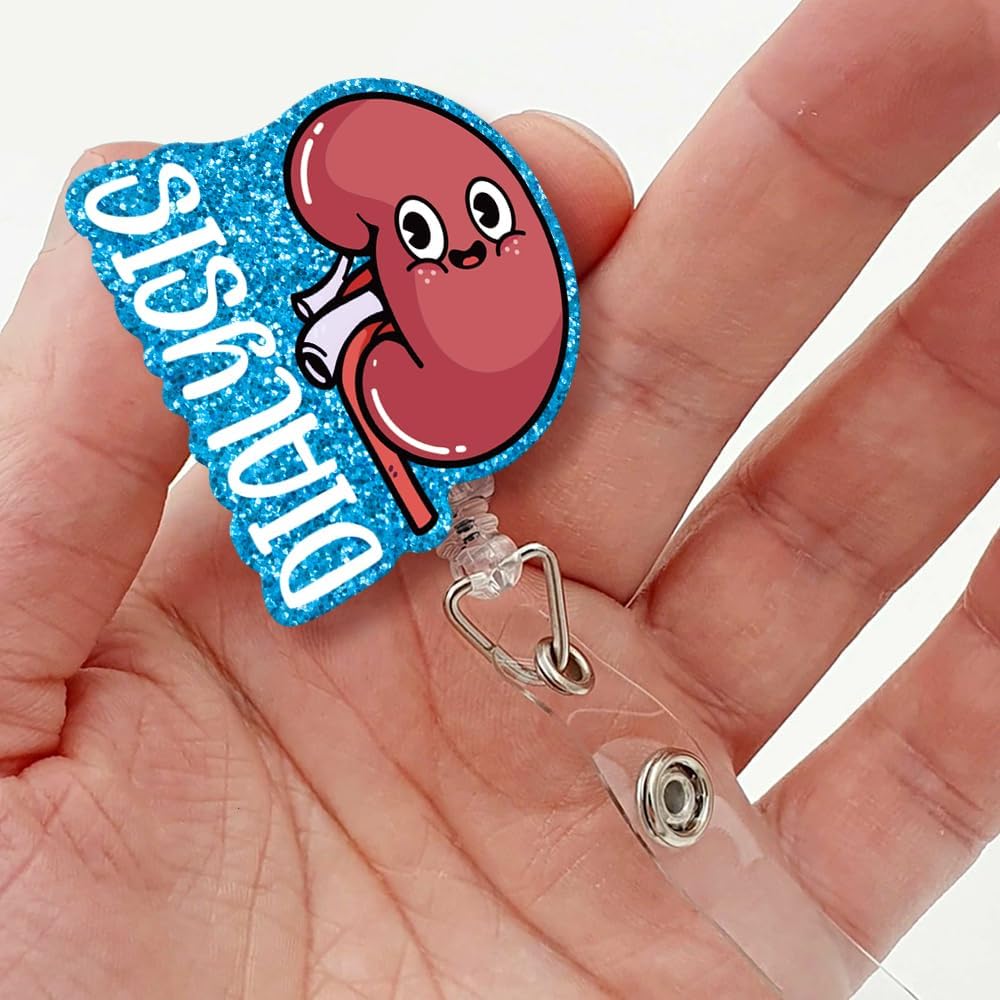 Dialysis Retractable Glitter Irregular Badge Reel with Alligator Clip, Funny Badge Holder Gift for Dialysis Tech Nephrology Kidney Doctor Nurse MD RN Nursing Medical Work Office Colleague