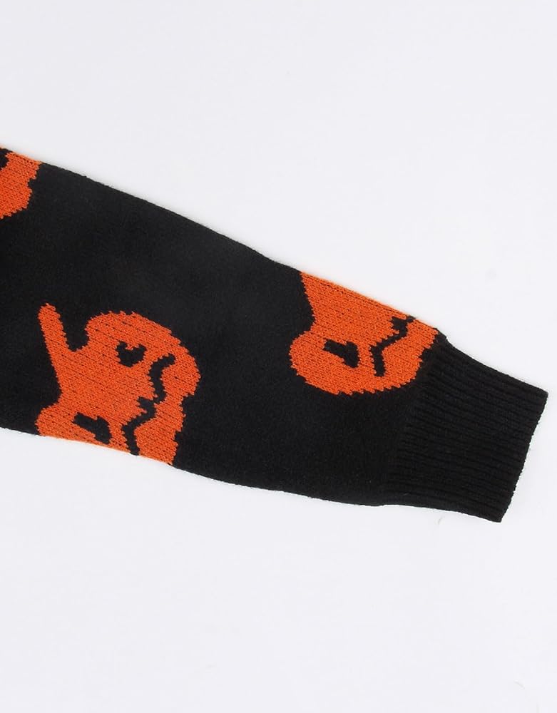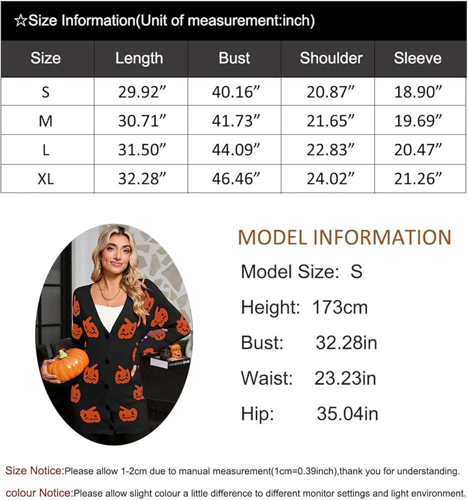 Features: Long sleeve,Button-down open front,Personality halloween pumpkin knit pattern,Loose casual cardigan sweater coats for women.
