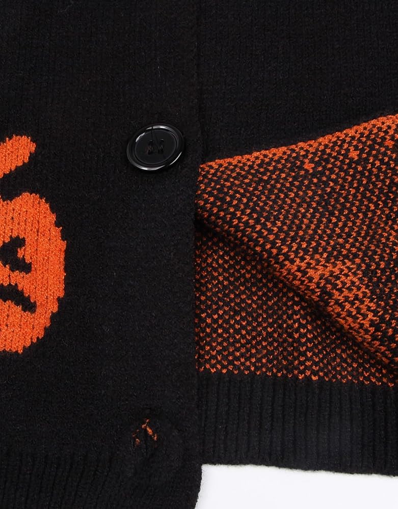 Chic Style: This women's button down cardigan sweaters with Personality halloween pumpkin knit pattern,which can make you a stylish,elegant,casual image.