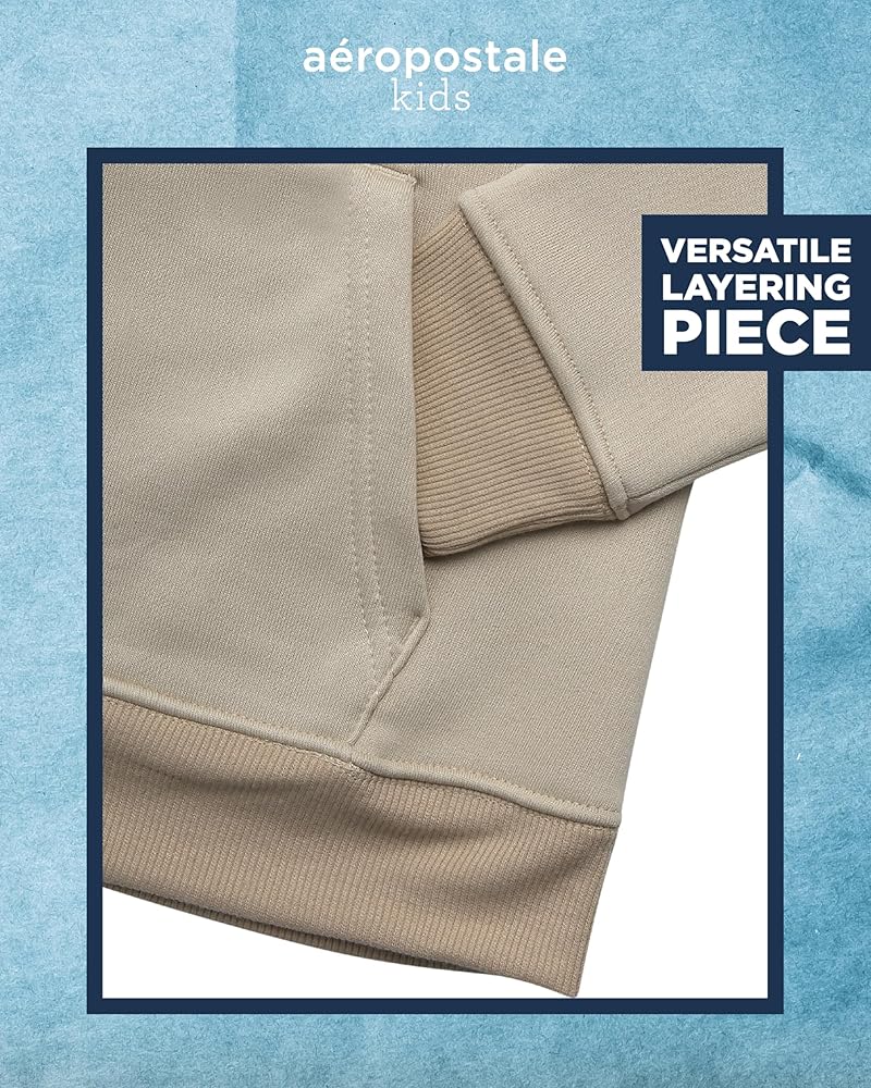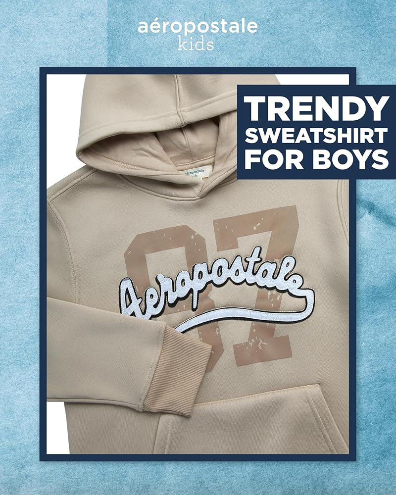 VERSATILE LAYERING PIECE: Add a touch of warmth and style to his ensembles with the AEROPOSTALE Boys' Pullover Hoodie Sweatshirt. Whether worn as an outer layer over a t-shirt or as a cozy mid-layer under a jacket, this hoodie effortlessly transitions from season to season. Its versatility makes it an essential staple in any boy's wardrobe, offering endless styling possibilities for school days, playdates, or weekend outings