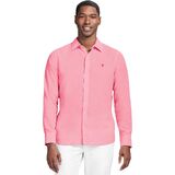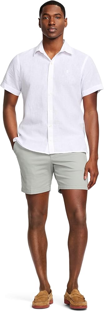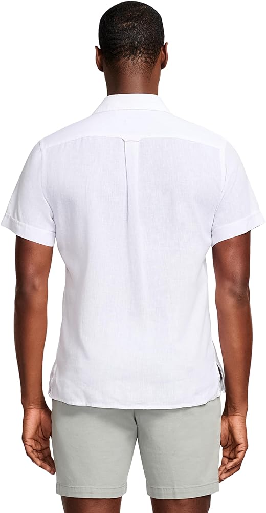 Whether you're strolling city streets or lounging by the shore, breathe easy in this lightweight button-down shirt. It's styled with short sleeves, a point collar and the perfect untucked length—cut in a cooling, breathable linen blend that's also conveniently machine washable.
