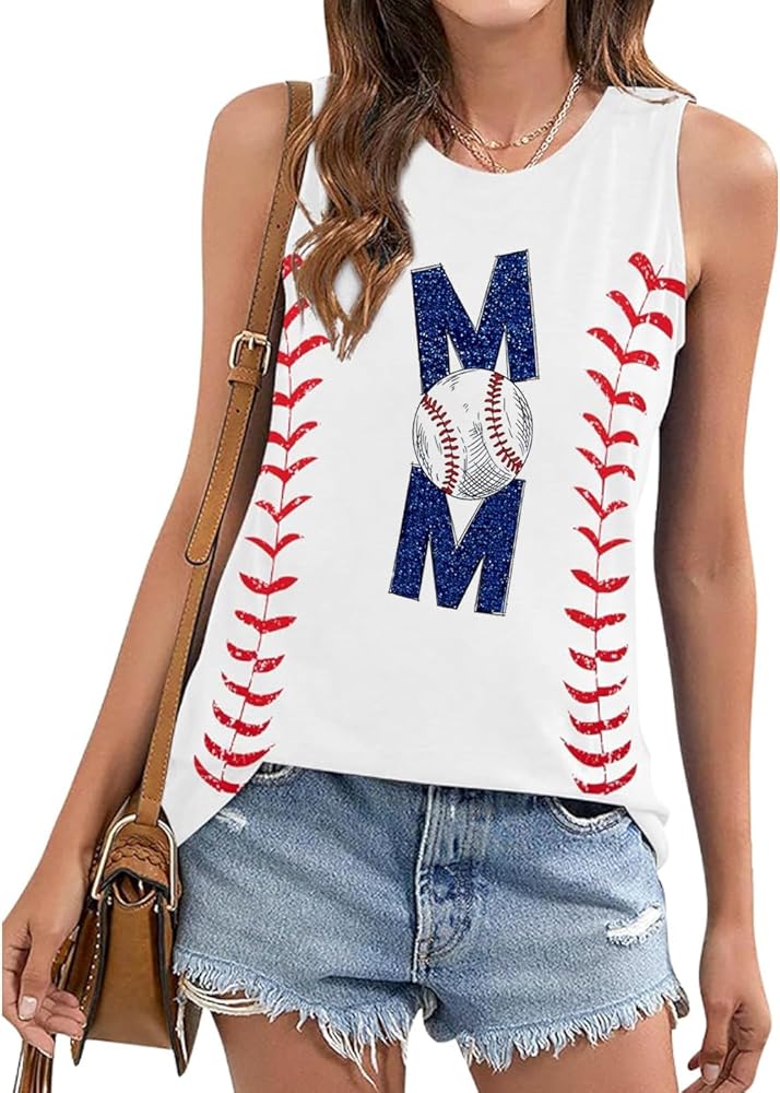 【Features】- women's baseball tank tops, baseball mom tanks, workout tank, casual tank, summer sleeveless shirt, cute graphic casual tee tops, funny letter graphic tanks.