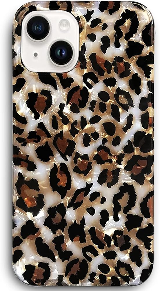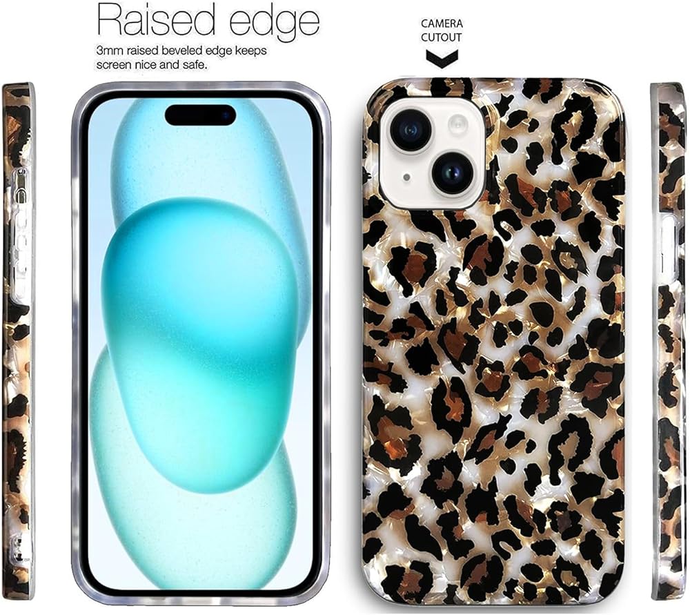 J.west Case Compatible with iPhone 15 Plus Case 6.7, Luxury Sparkle Translucent Clear Leopard Cheetah Print Pearly Design Soft Silicone Slim TPU Protective Phone Case Cover for Girls Women (Bling)
