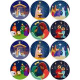 【Christmas Religious Stickers Labels】: Christmas religious stickers labels package included 3 sheet stickers, in total 36pcs nativity scene stickers in 12 different designs. Each round sticker label is 1.5". Perfect size for decorating Christmas religious gifts.
