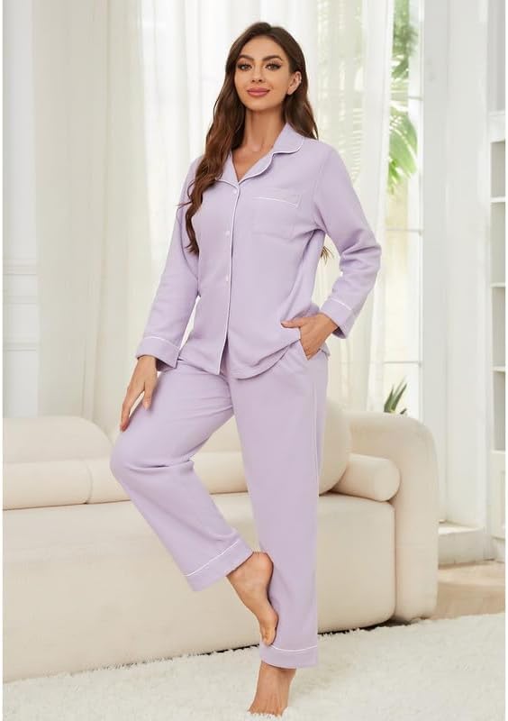 Lapel and Button Design: This pajamas for women set features a classic turn-up collar design, showing elegance and classic style. The lapel design usually gives a mature and demure look, which is suitable for people of different ages. Additionally, this pjs sets for women features a button design that makes it easy to put on and take off, while also adding a touch of sophistication