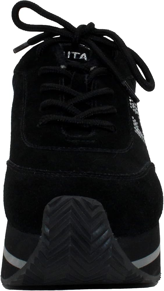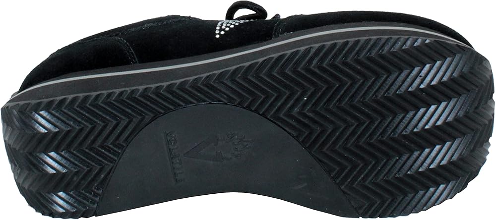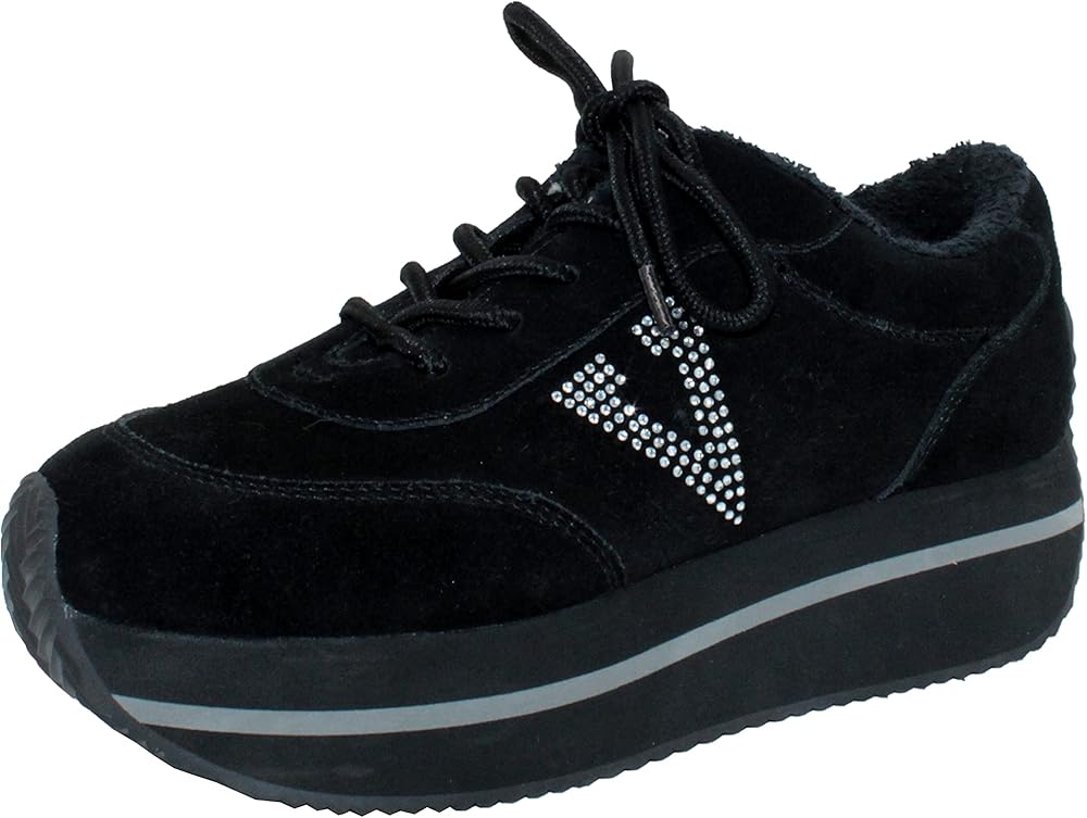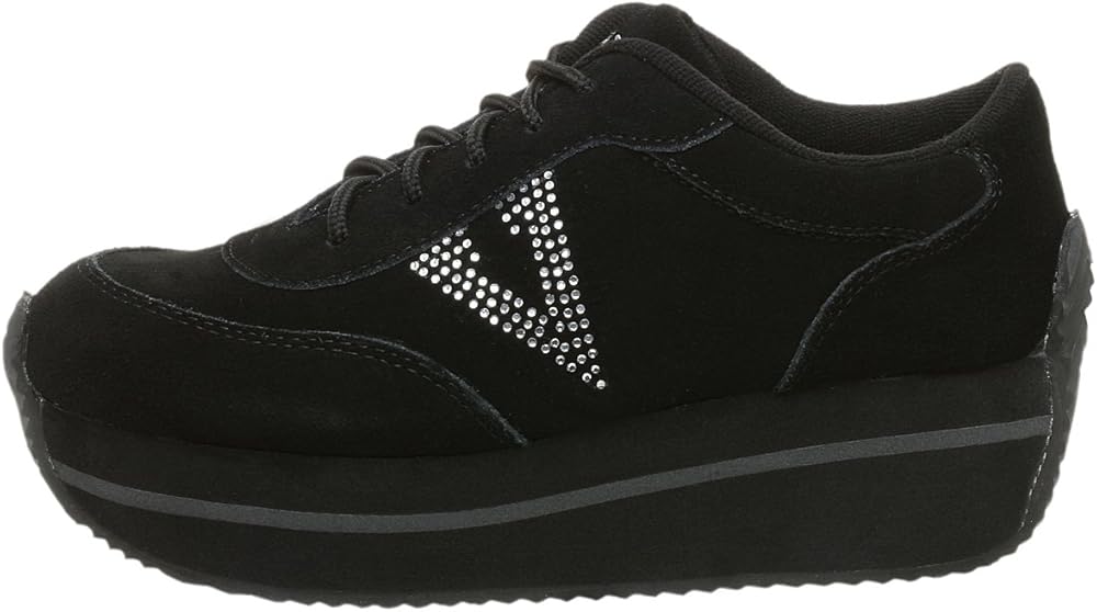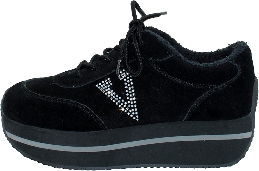 Pair these kicks with a mini, your favorite denim, or this seasons latest silhouettetheyre sure to elevate your favorite casual look to new heights. Fashioned in modish black suede, these cool kicks work with just about any ensemble and feature an attention-grabbing rhinestone "V" logo. A traction-ready corrugated rubber outsole, toe guard, and padded collar ensure a comfy ride.