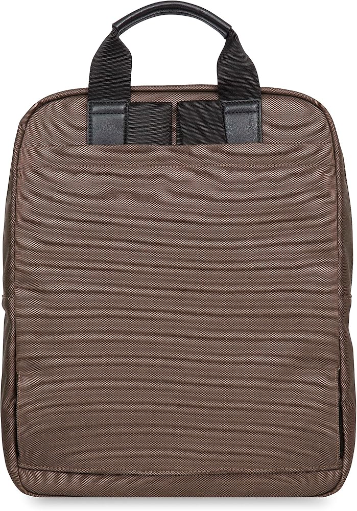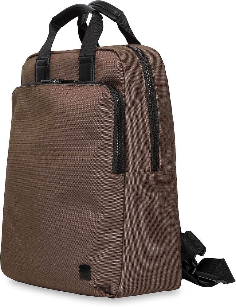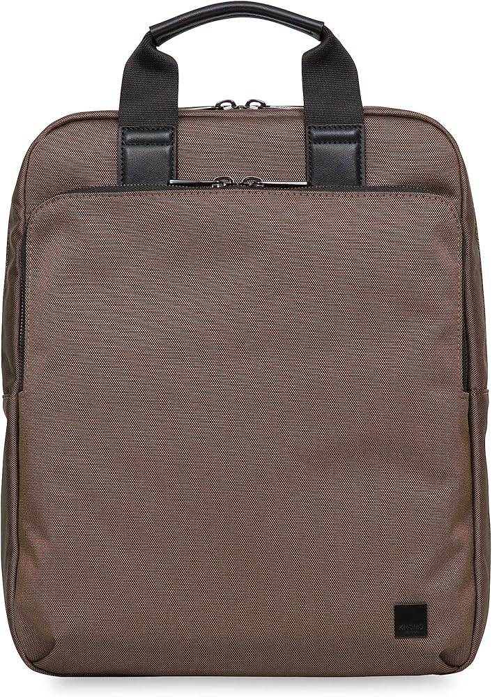 Made from water-resistant durable oxford with metal zipper and leather trim. Interior features a fully lined grey fabric lining that will stand up to daily use. The KNOMO James backpack can also be carried as briefcase.