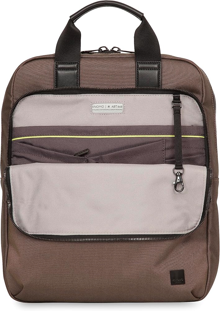 Padded computer department fits most laptops with up to a 16-inch screen. Additional book or tablet pocket in main compartment with KNOMO organization pockets. The KNOMO James backpack also has front zip compartments that provide a slip and RFID protected pocket, 2 card slots, 2 pen loops and a Detachable Key Chain Strap.