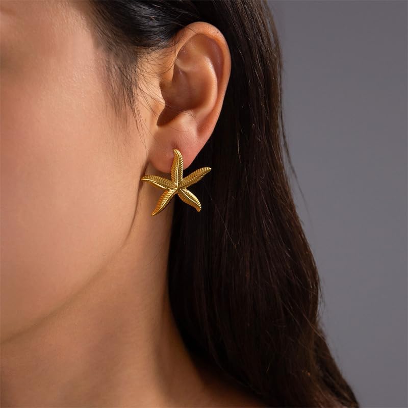 【Trendy Gold Stud Earrings】 : gold stud earrings feature a summer popular element design, gold texture combined with vivid conch sell shapes, suitable for vacation or daily wear, embrace bohemian resort style with our conch sell earrings.