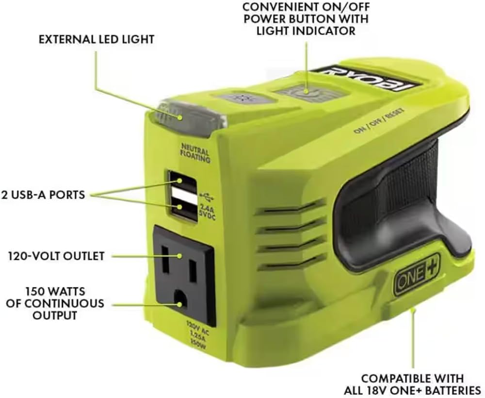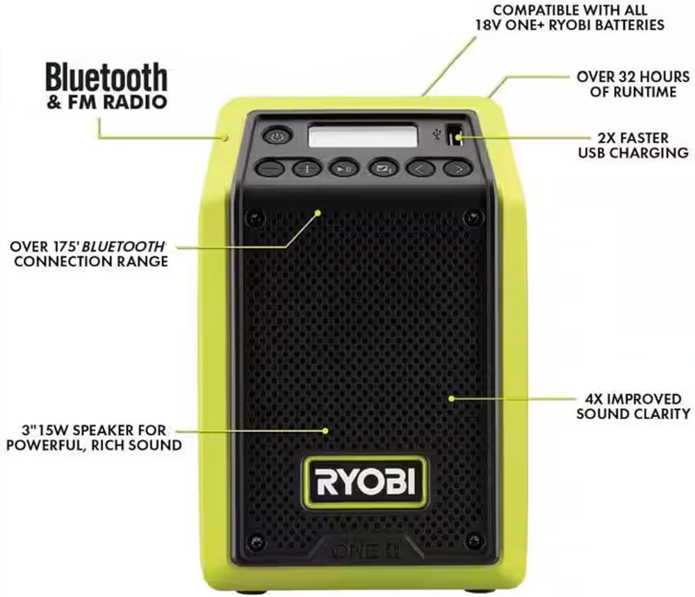 Introducing the Buho Cordless 4-Tool Storm Ready Accessory Bundle, a comprehensive solution for all your emergency and outdoor needs. This versatile bundle includes a powerful Ryobi radio, illuminating area light, convenient power inverter, and a compact multi-tool, providing everything you need to stay prepared during storms or outdoor adventures. With both BLUETOOTH and FM radio modes, the Ryobi radio offers over 175 ft. of connection range and 32+ hours of continuous runtime, ensuring you stay entertained and informed wherever you go. The LED Area Light boasts 850 Lumens of brightness, accompanied by a folding metal handle and USB charging port for added convenience. Additionally, the Power Inverter delivers 150-Watt of continuous output, perfect for charging laptops, tablets, and other devices on the go. Meanwhile, the compact Multi-Tool features 14 stainless steel tools, including pliers, screwdrivers, and saw, providing versatile functionality in a portable package. With the included 2.0 Ah battery and 18 Volt charger, as well as a durable tool bag for easy transport and storage, this bundle is designed to keep you equipped and ready for any situation.