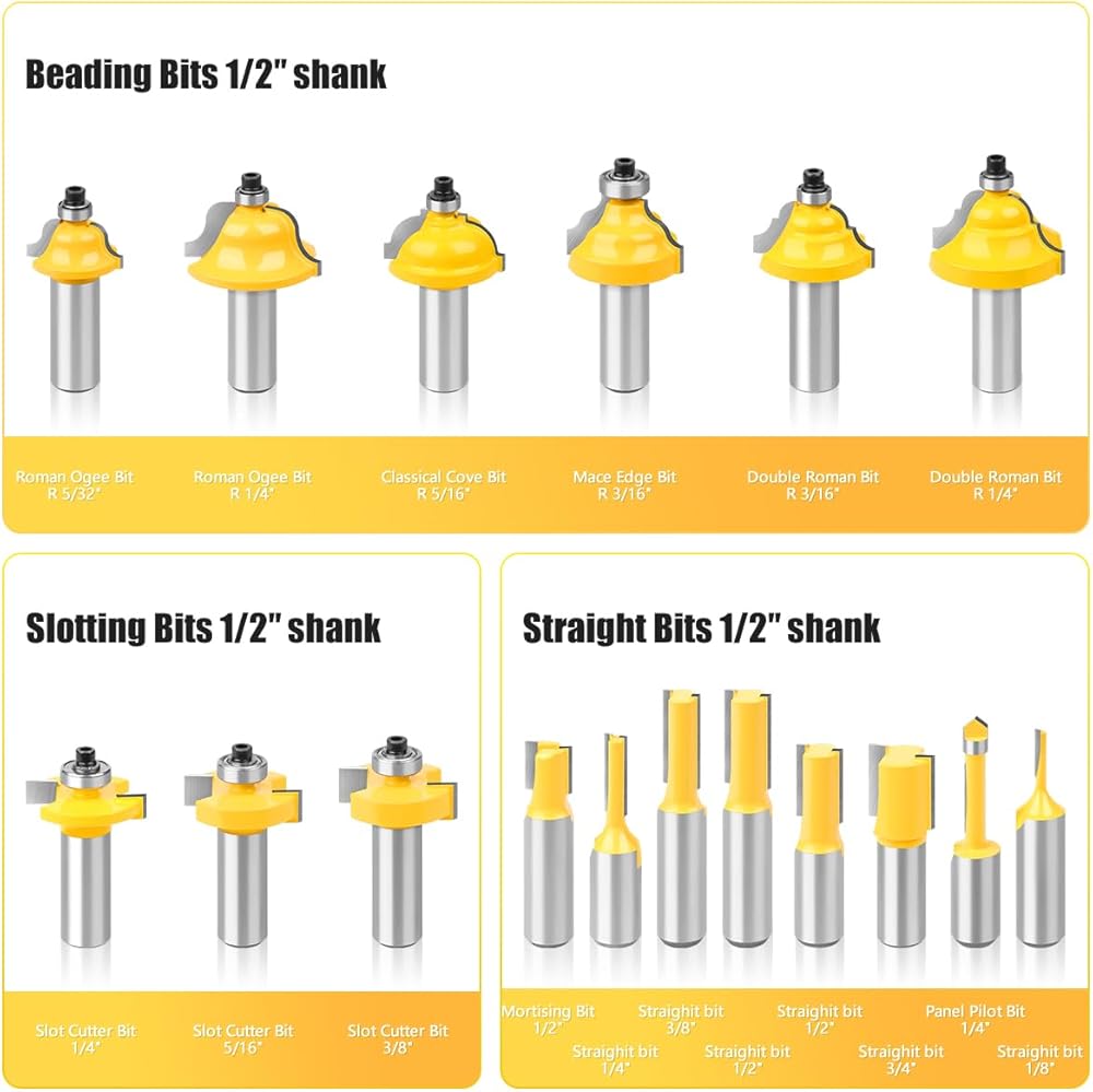 【DURABLE】 Multipurpose wood router bit set ,delivers precision and durability,YG8 (C2) tungsten carbide blades made can withstand some heavy use.