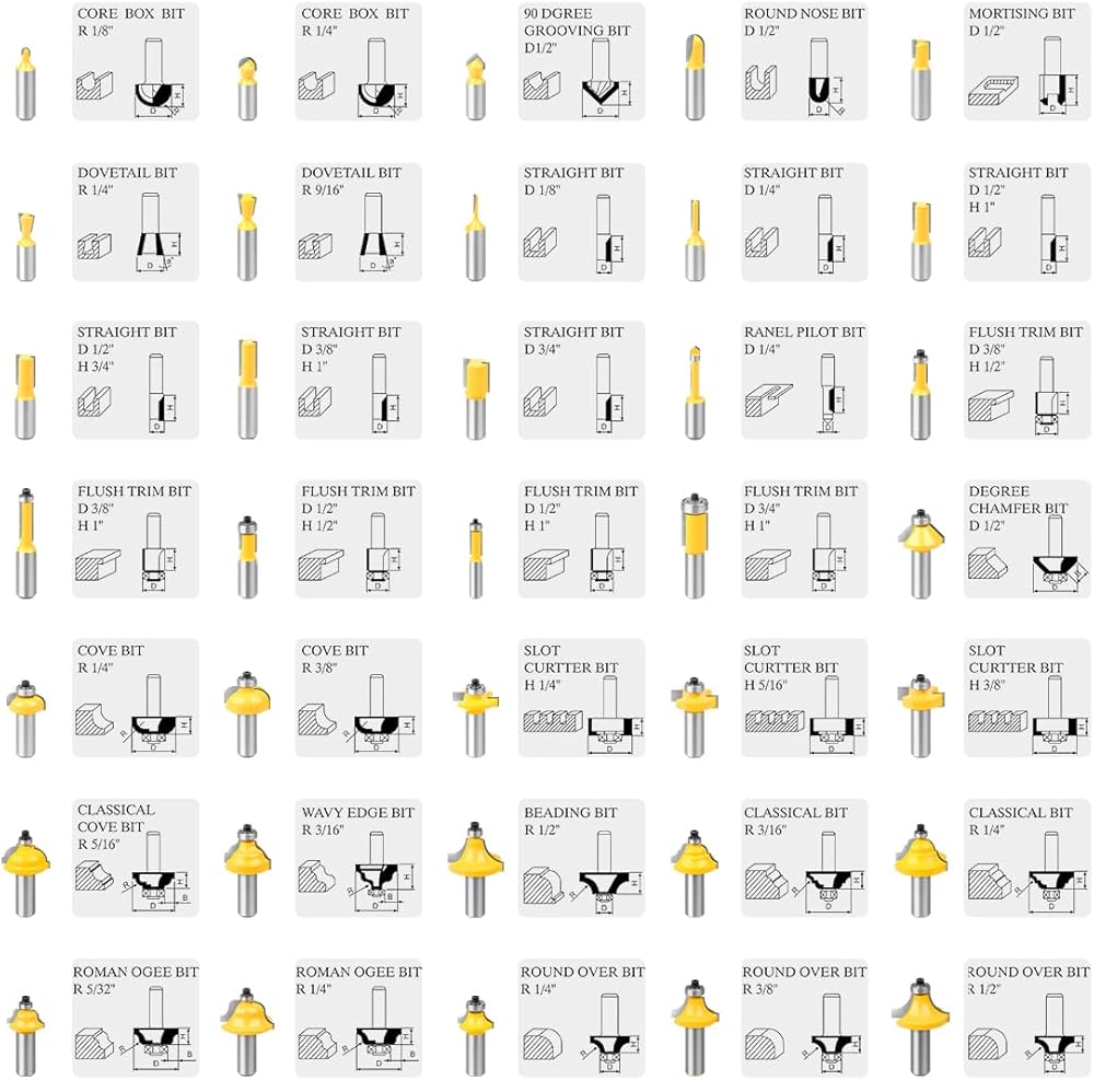 【35-PIECE SET】 router bit set includes the most used sizes for common DIY tasks , notch,routing edges and engraving.