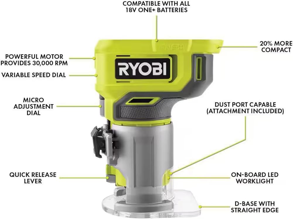 • Compact Router: Powerful cutting at 20,000-30,000 RPM