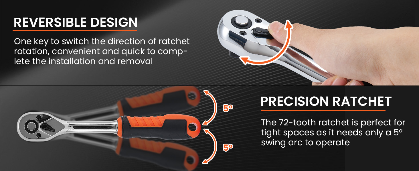 *Durable Construction, Timeless Appeal* Forged from robust chrome vanadium steel, this ratchet wrench is built to endure rigorous use and the test of time. Finished with corrosion-resistant coating, it retains its polished appearance while withstanding workshop wear, establishing itself as a lasting tool in your arsenal.