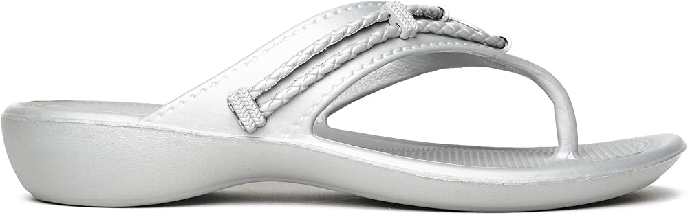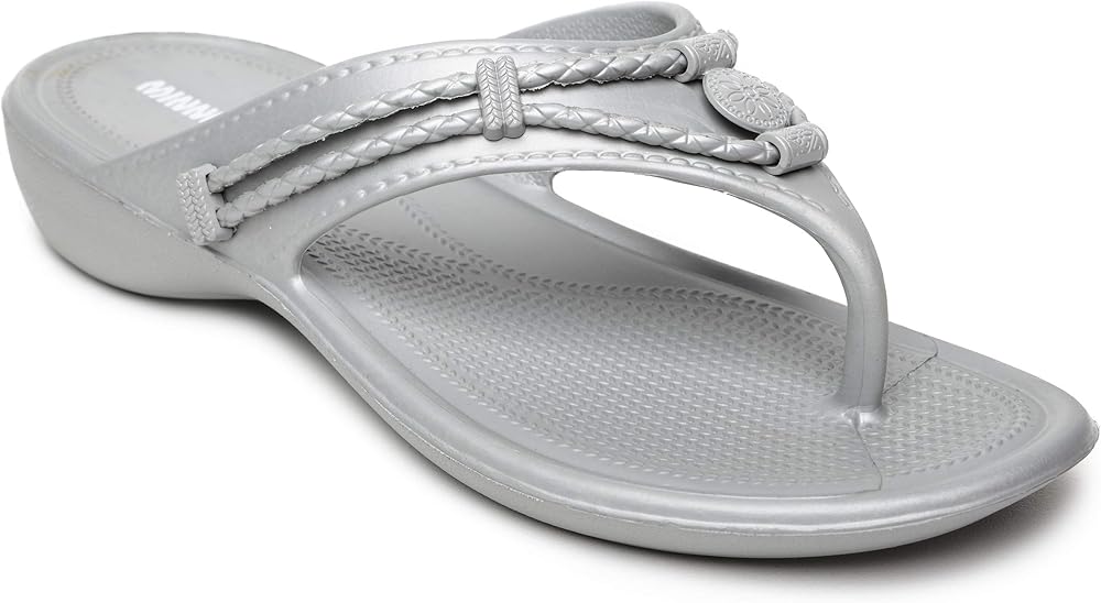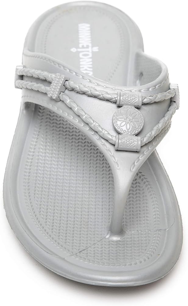 *Savor the sun-warmed western breezes in this sweet sling sandal *Leather or fabric upper with braided detail and silver metallic ornaments *Adjustable hook and loop backstrap for a custom fit *Suede-like fabric footbed cover *Soft foam footbed *Flexible rubber-like sole *1-1/4" heel height *Available in whole sizes only, half sizes please order the next size up