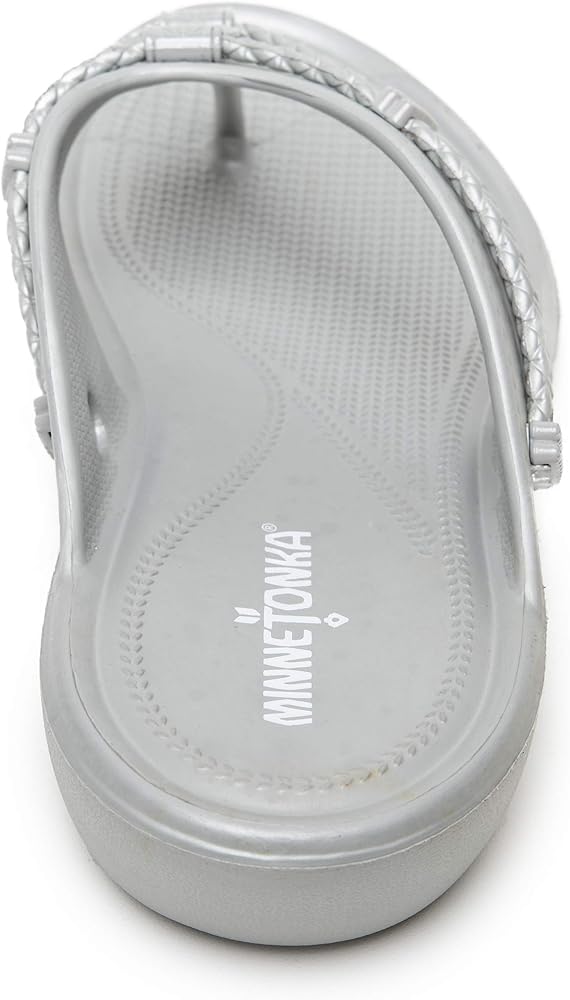 Leather or fabric upper with braided detail and silver metallic ornaments