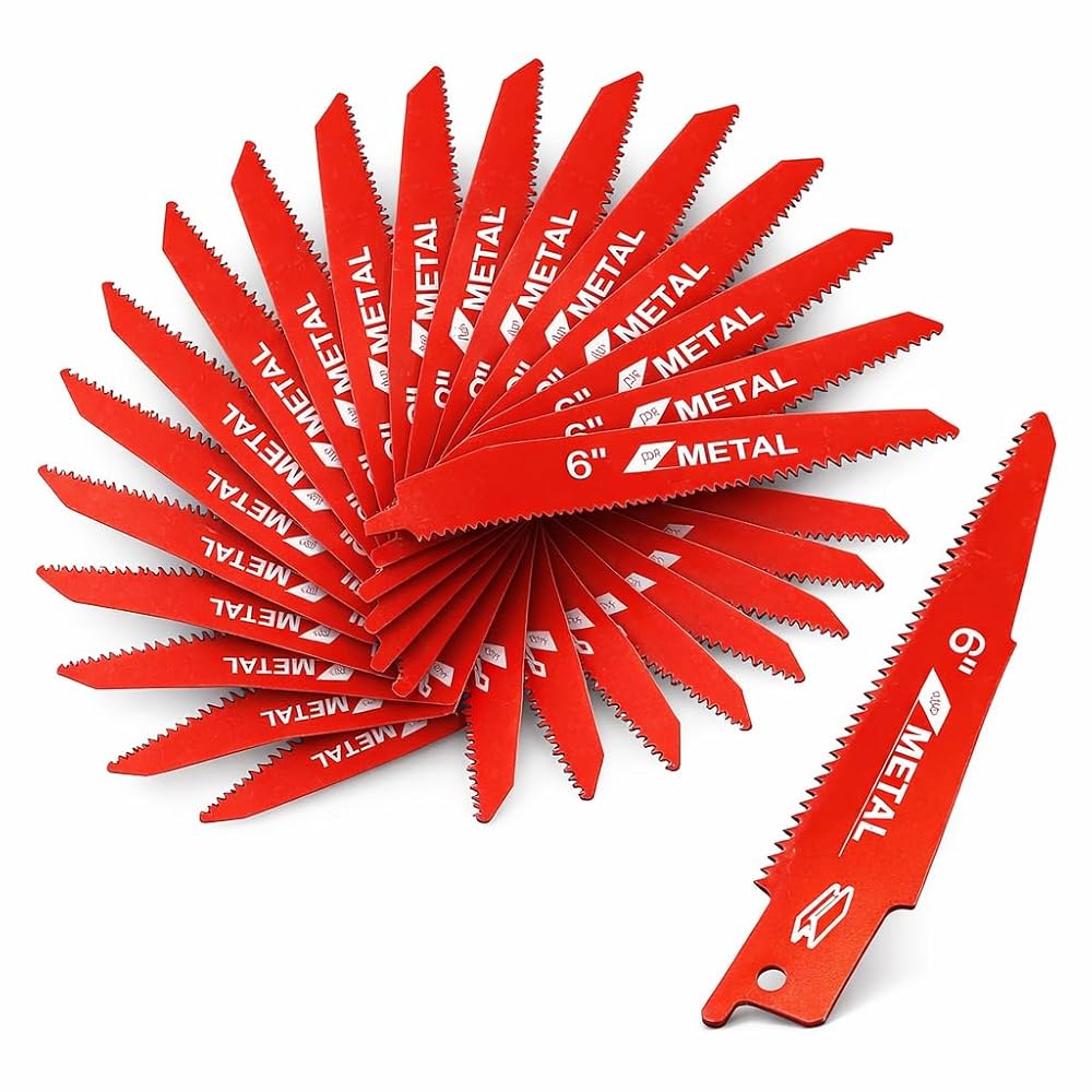 25 Pack 6 Inch Reciprocating Saw Blades for Metal Cutting, 14/18 TPI Bi-Metal Blades, Universal Fit for Demolition, Pipe & Construction Work (1/16″–5/16″)