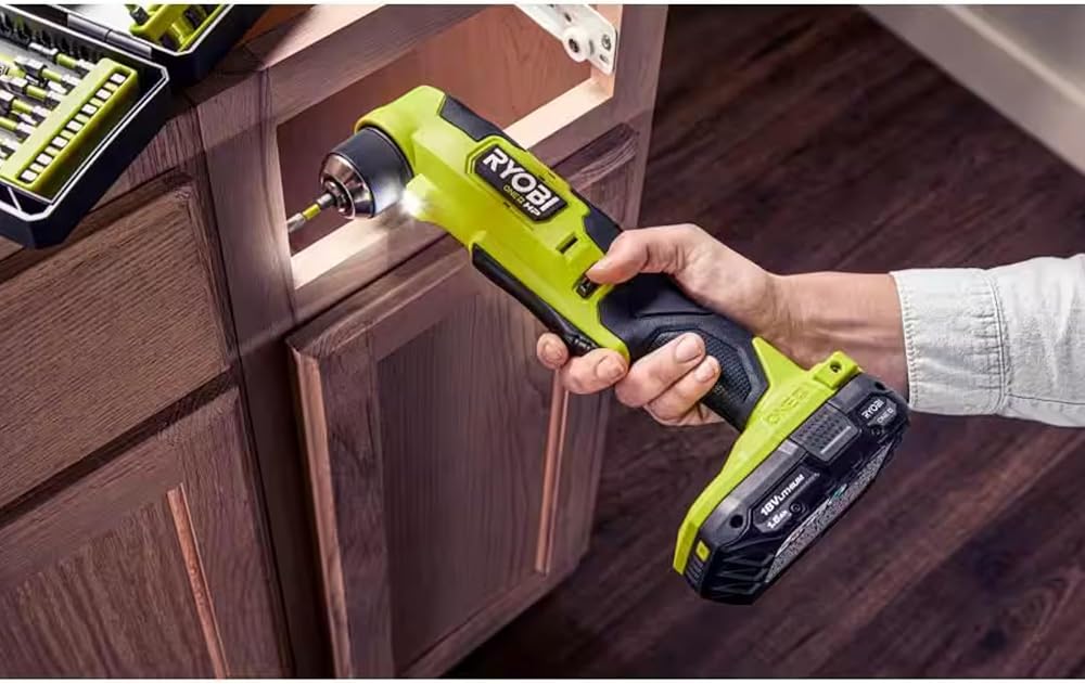 Buho Right Angle Drill Accessory Bundle - 18-Volt Brushless Cordless Compact 3/8 inch Chuck 1.5 Ah Battery 18V Charger Impact Drill Bit Set Tool Bag