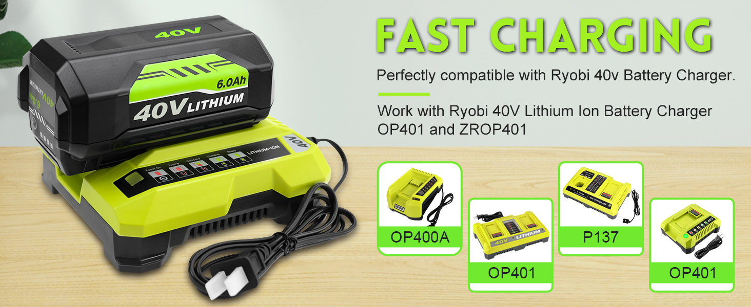 【OP40601 Model for Ryobi 40v】- Professional replacement battery for Ryobi 40V battery OP4050A OP4040 OP4030 OP4026A OP40201 ZROP4026; Fit for Original electronic device RY40200 RY40403 RY40204 and chargers OP401 ZROP401.
