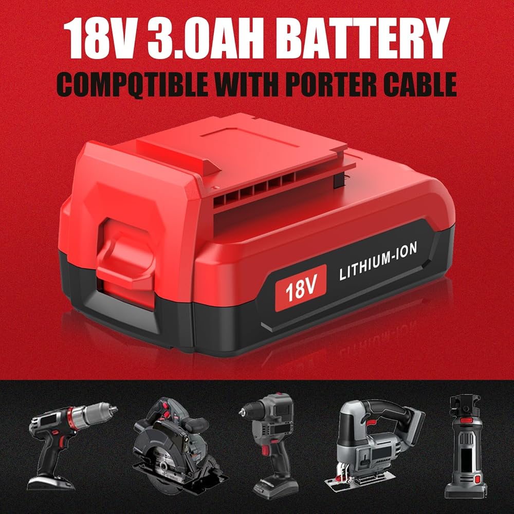 2Pack PC18BLX 18V 3000mAh Lithium Replacement Battery for Porter Cable 18V Battery Compatible with Porter Cable 18 Volt Battery PC18B PC18BL PC18BLX PCC489N PC188 PCXMVC Cordless Power Tools (Red)