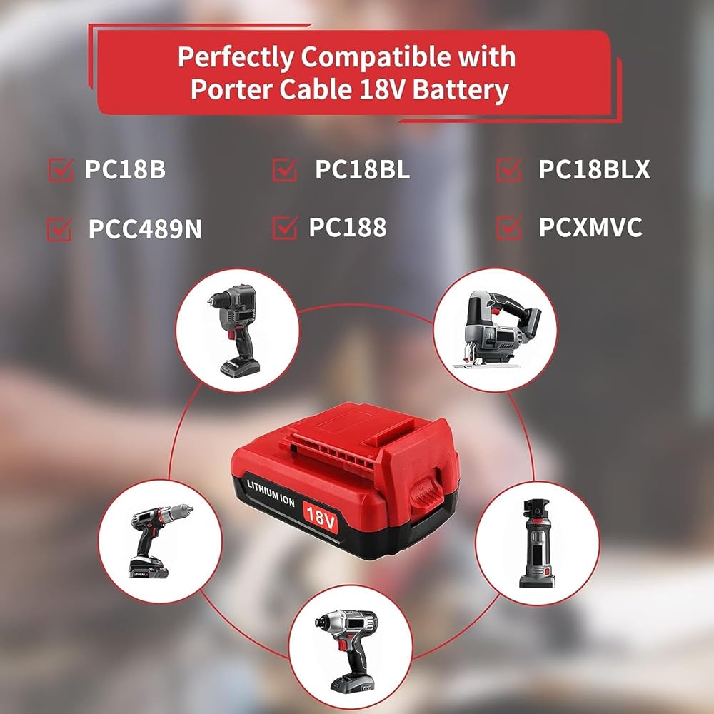 Compatibility : 100% Compatible with Porter Cable 18v PC18B PCC489N PCMVC PCXMVC, professional replacement battery compatible with Porter Cable 18 volt power tools.