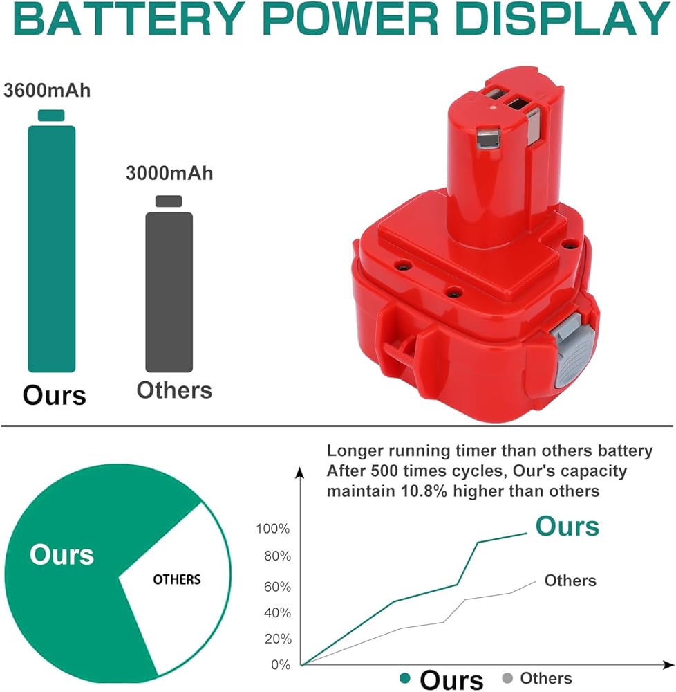 【Basic Information】Battery Type: Rechargeable NiMh battery with 3.6Ah capacity. High quality replacement battery provides great performance. And equipped with automatic overload cut-off, short-circuit and over-voltage protection