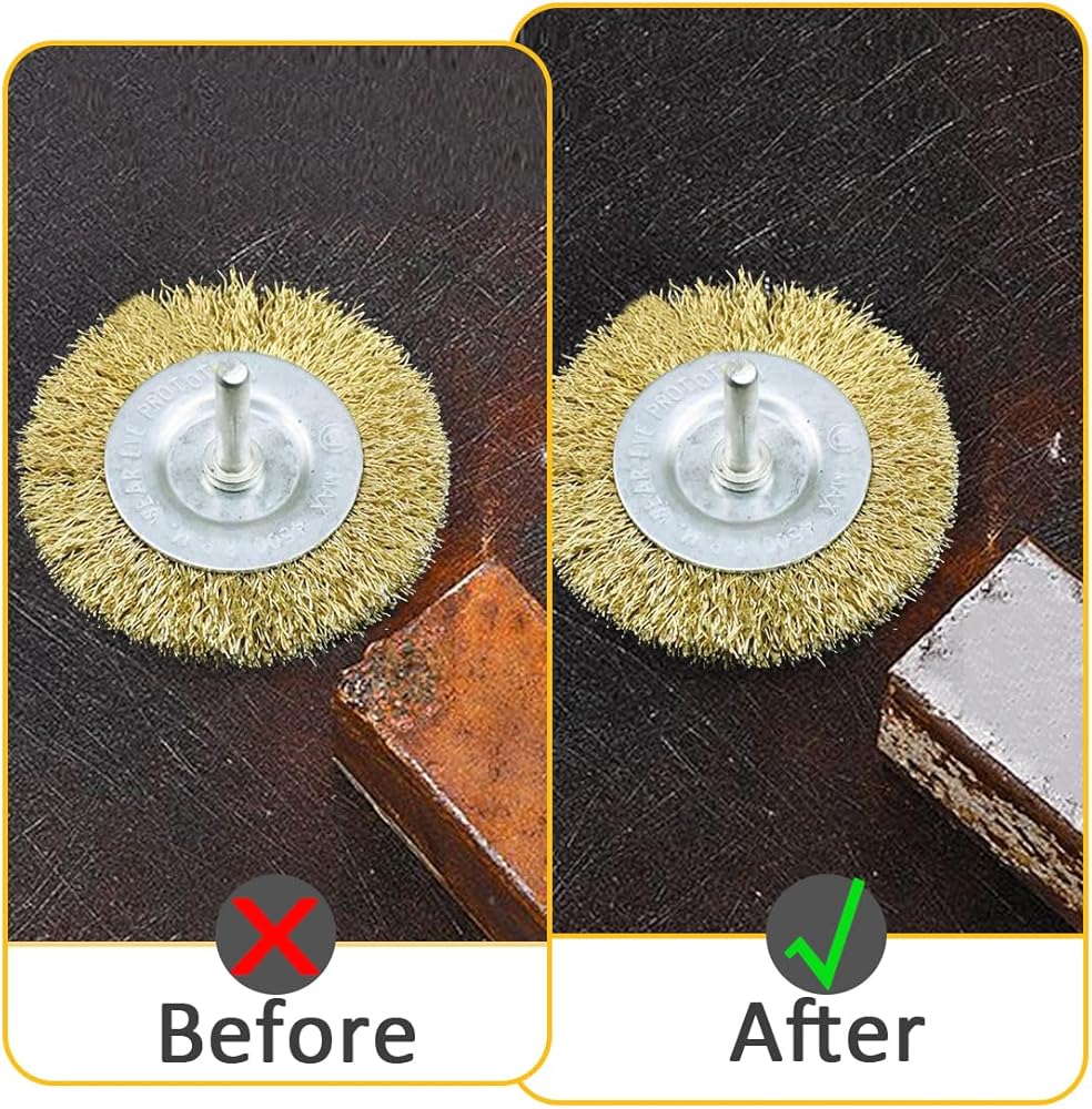 The wire brush set is suitable for rust removal, paint stripping, descaling, deburring, edge grinding and polishing on metal and wood surfaces.Easily and smoothly remove heavy corrosion, rust, paint, spatter and scale removal while also clean weld edges, debur metal and paint.For safety, please wear protective gear, such as goggles, mask, protective gloves and protective clothing.