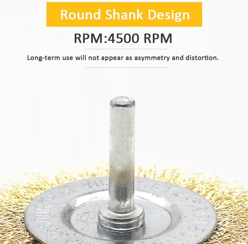 Brass-coated wire drill wheels have several advantages over standard steel wire wheels.Brass is softer than steel, so brass-coated wire wheels are less likely to damage delicate surfaces.Brass does not spark as readily as steel, making it a safer choice in flammable environments. These rotary wire wheels, cup and end brushes can operate at high speeds up to 4500 rpm for maximum efficiency.