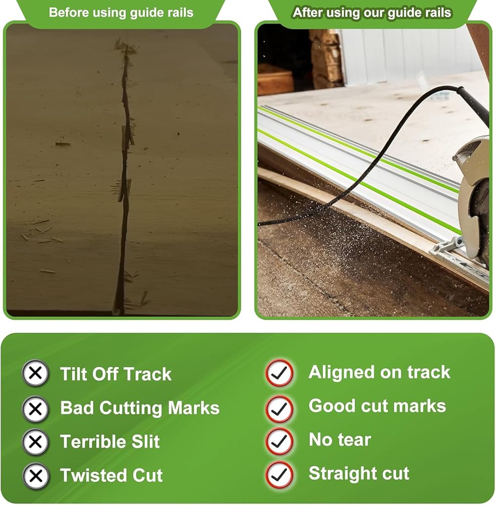 This 55" rail track helps prevent the material from splintering and therefore lead to significant time savings for finishing work