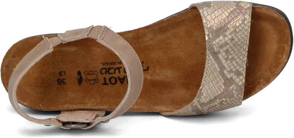 THE NAOT FOOTPRINT: Experience unbeatable comfort and support with Naot's unique footbed in the Sabrina sandal. Their signature footbed is a true game-changer. Made with a blend of natural cork and latex, it's engineered to perfectly match the contours of your foot, just like the impression you make in the sand. Plus, the more you wear it, the better it molds to your unique foot shape!