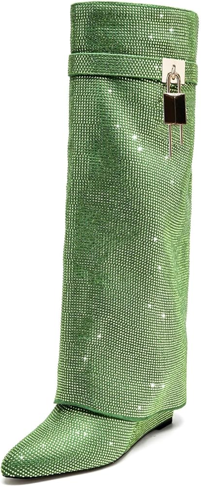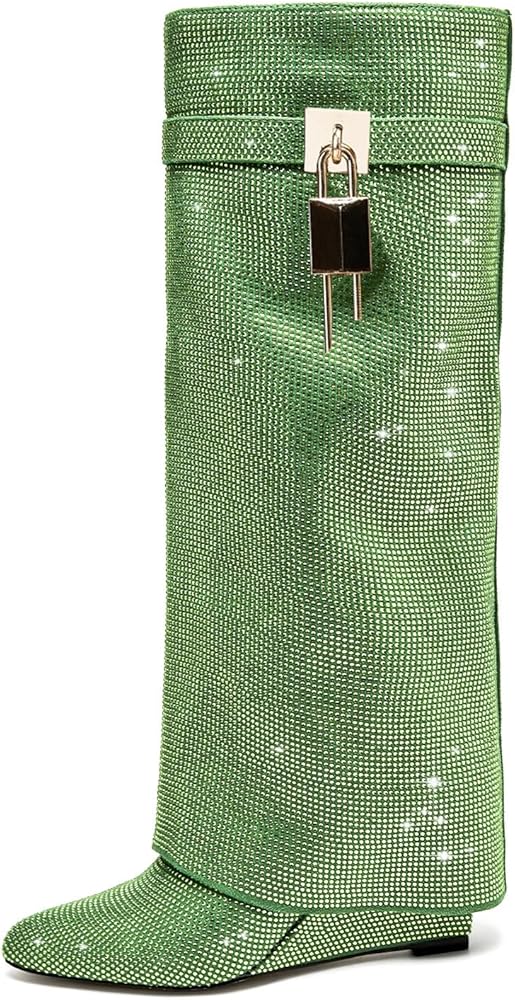 【Unique Design Boots For Women】with pointed wedge heel design, fashionable and comfortable, and with rhinestones and a small lock hanging on the upper, we will also prepare spare rhinestones for you, if accidentally fall off, you can use high stability adhesive to stick on.